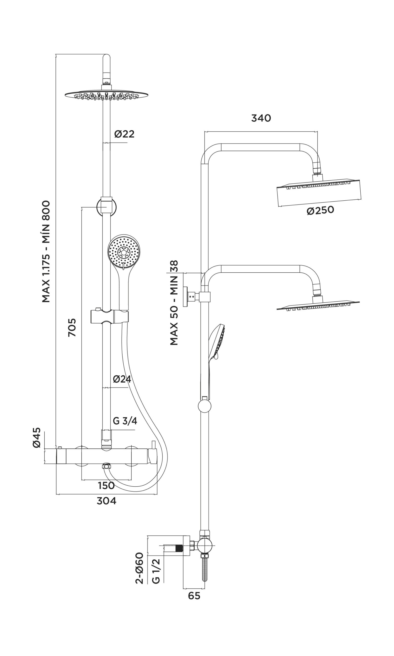 Esta ducha cuenta con un rociador orientable, un maneral de ducha y un flexo de 1,50m.