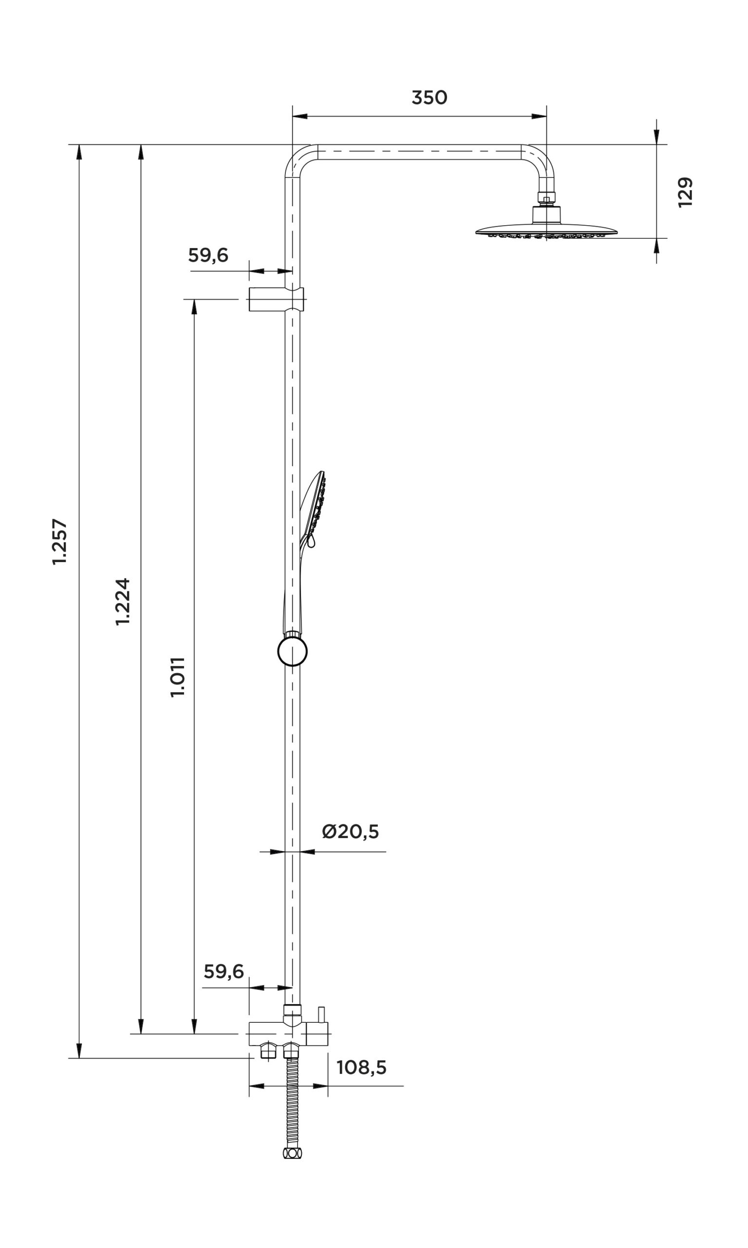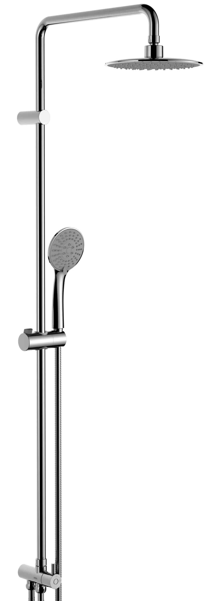 Este conjunto cuenta con un rociador orientable de Ø200mm, un maneral de ducha de Ø120mm y un flexo de 1,75m.