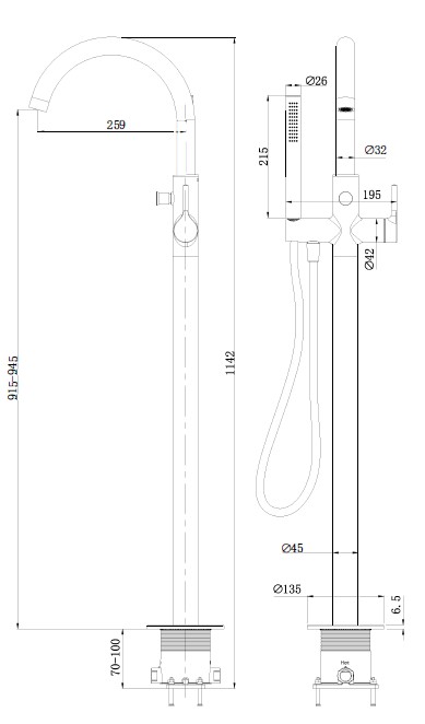 HADES MONOMANDO BAÑERA EXENTA DE PIE NEGRO MATE