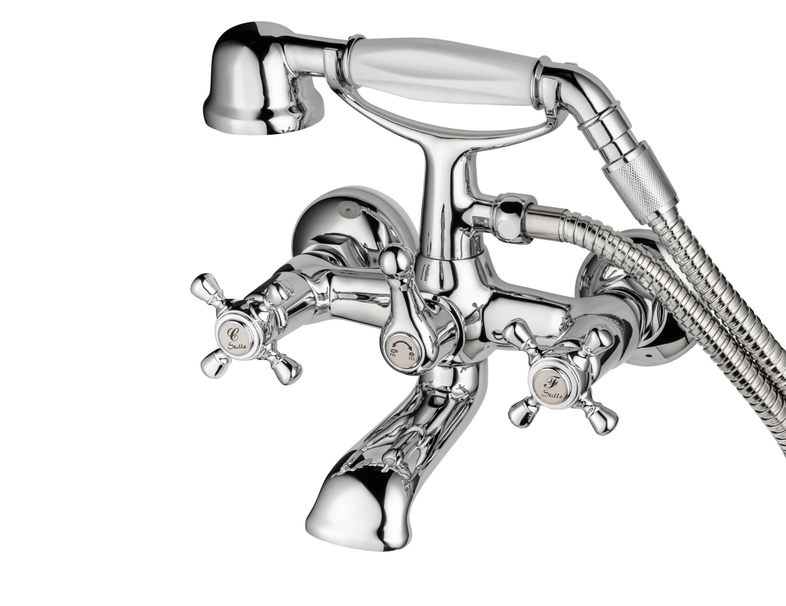 "Ducha teléfono y flexible de 1,75 m. Mezclador con aireador e inversor automático. Soporte articulado."