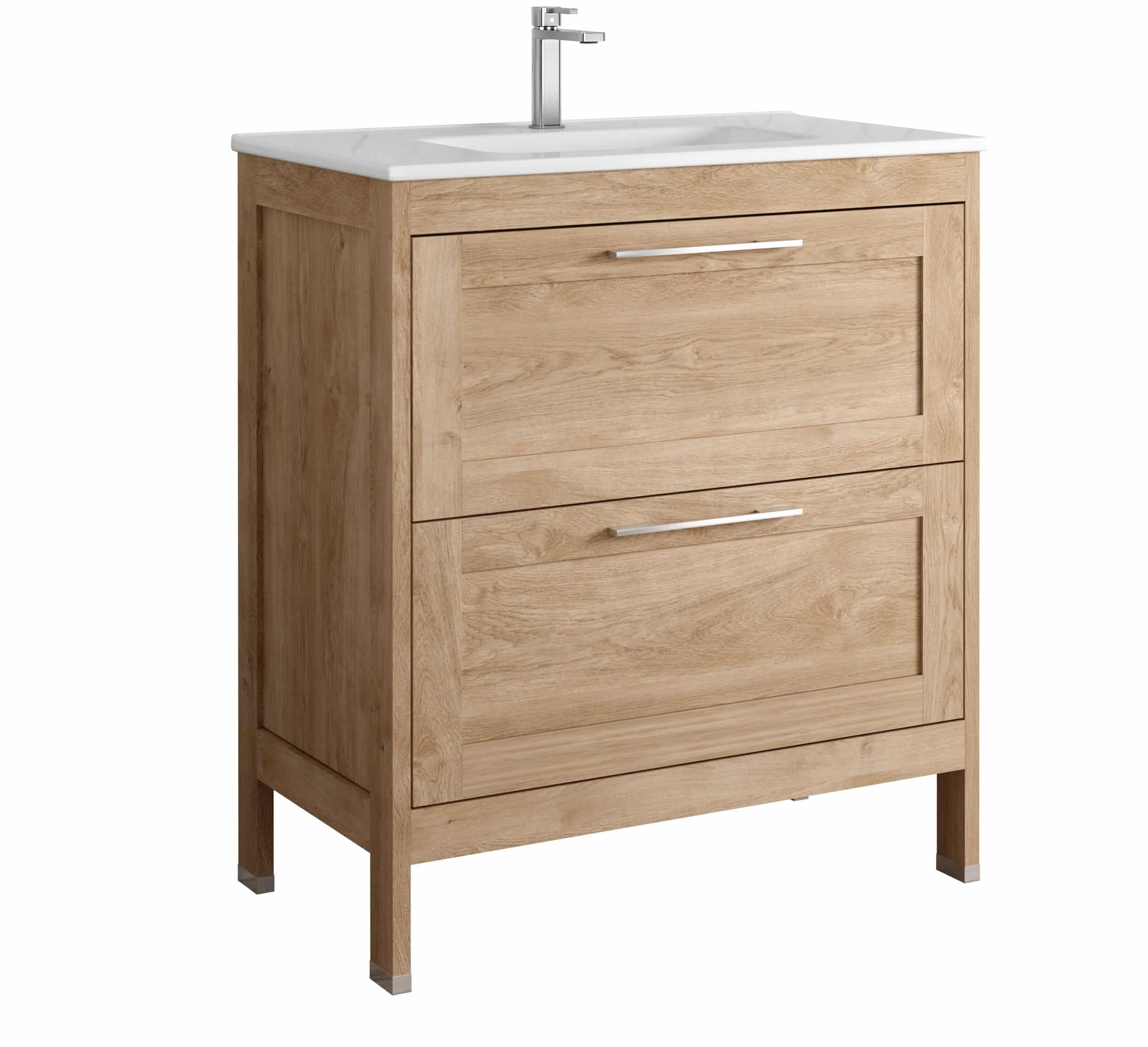 La colección Classic, de estilo tradicional y atemporal, ofrece muebles de dos cajones metálicos de extracción total con patas a suelo incluidas y tirador cromado en brillo.