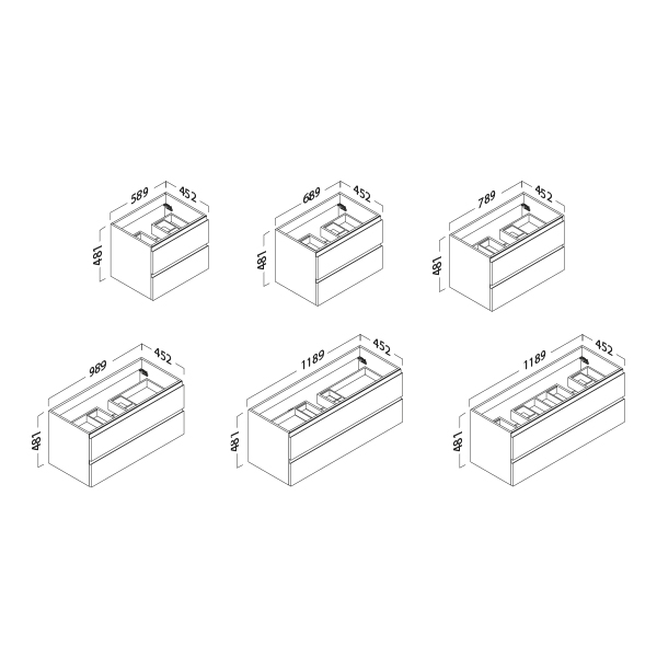 Milano ofrece muebles de dos cajones de madera con un uñero exclusivo en forma de «J» como sistema de apertura.